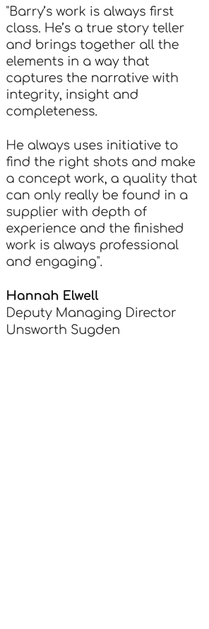 I like to keep things simple, producing documentary-style productions that are both clear and authentic. My focus is always on ‘your story’, communicating a strong and effective message in a credible and persuasive manner. My goal is not just to impress your audience but to inform, educate and inspire your customers - and my productions do precisely that.